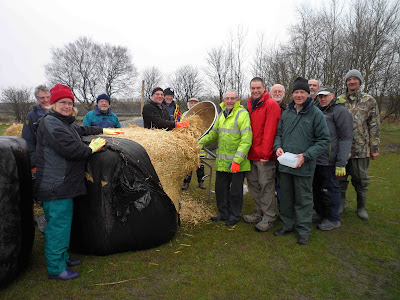 This is carried out twice a year (September and March) and the work involves removing the old straw from the tarn and stuffing new straw in mesh ‘sausages’ to float back out on the tarn.