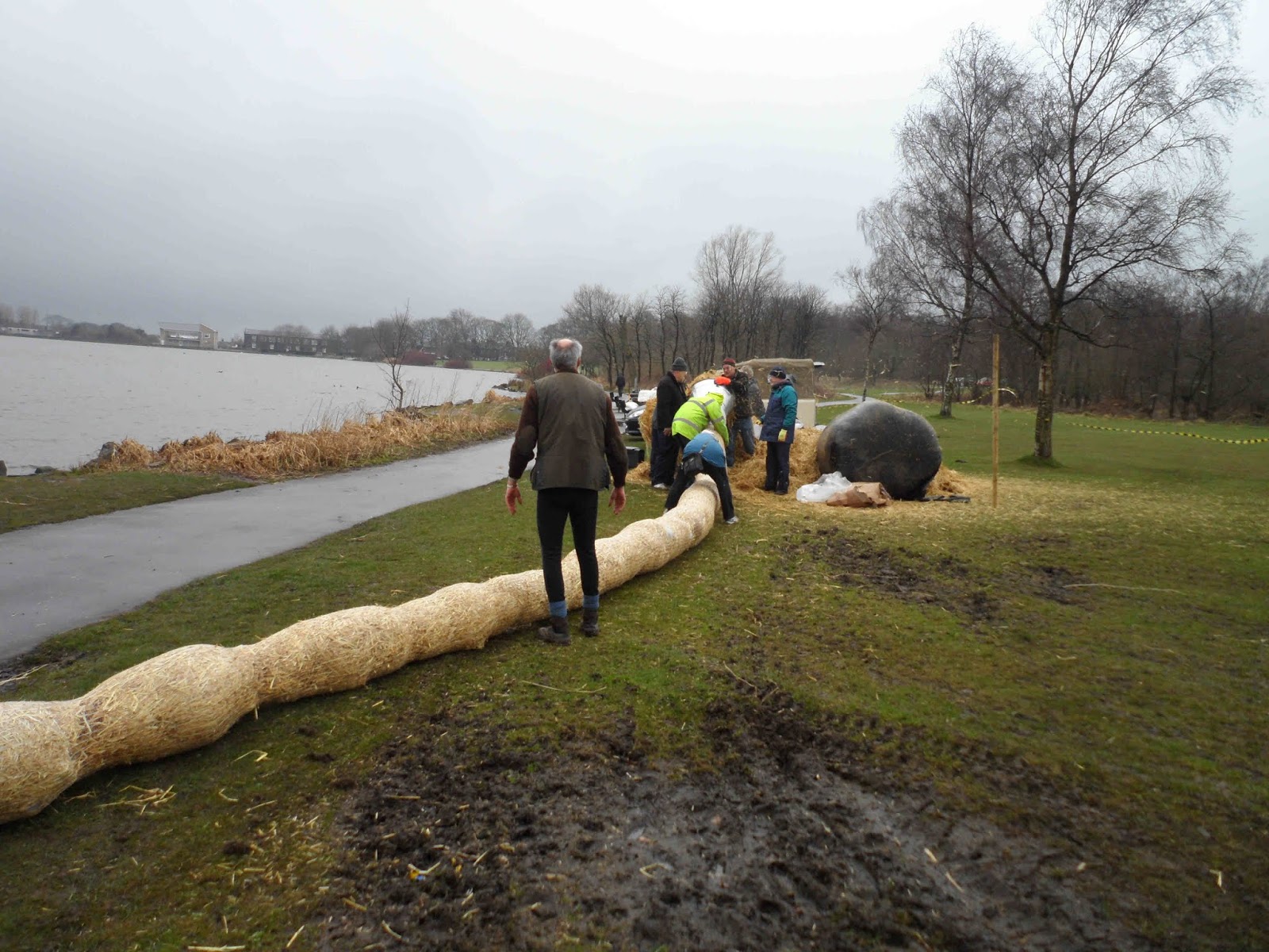 This is carried out twice a year (September and March) and the work involves removing the old straw from the tarn and stuffing new straw in mesh ‘sausages’ to float back out on the tarn.